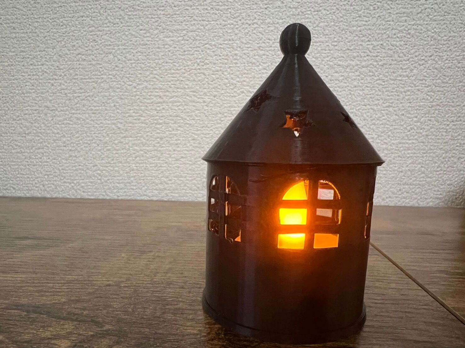 家の形を模したLEDキャンドルライトホルダーです。3Dプリンターを使用して丁寧に作られており、ブラックの素材がやわらかな光を広げます。暗がりの中、窓から漏れ出る幻想的な光の演出が、まるでおとぎの世界にいるかのような特別な雰囲気を醸し出します。リビング、寝室、パーティーなど、さまざまなシーンで活躍するアイテムです。また、温かみのあるデザインはインテリアにもぴったりで、どんなお部屋にも溶け込むことでしょう。
