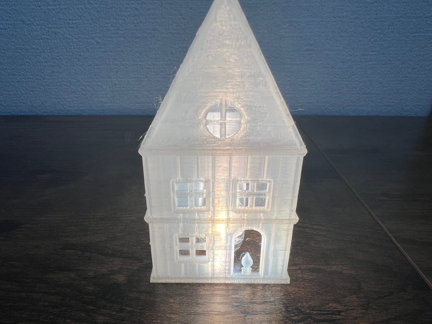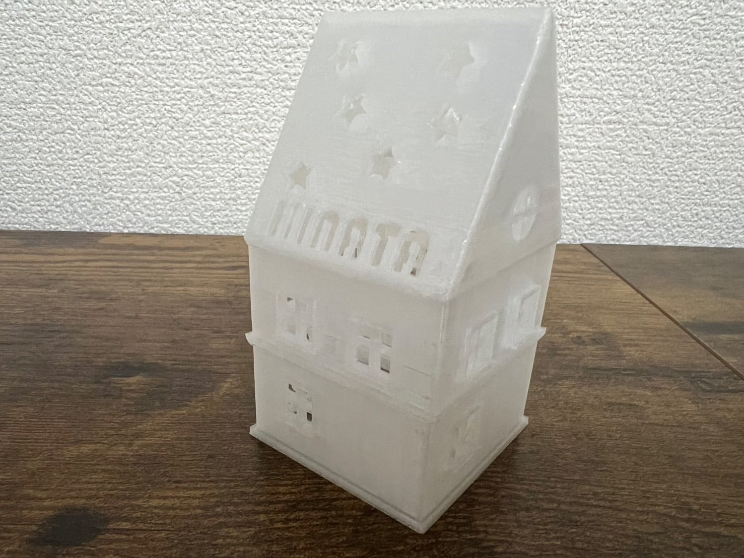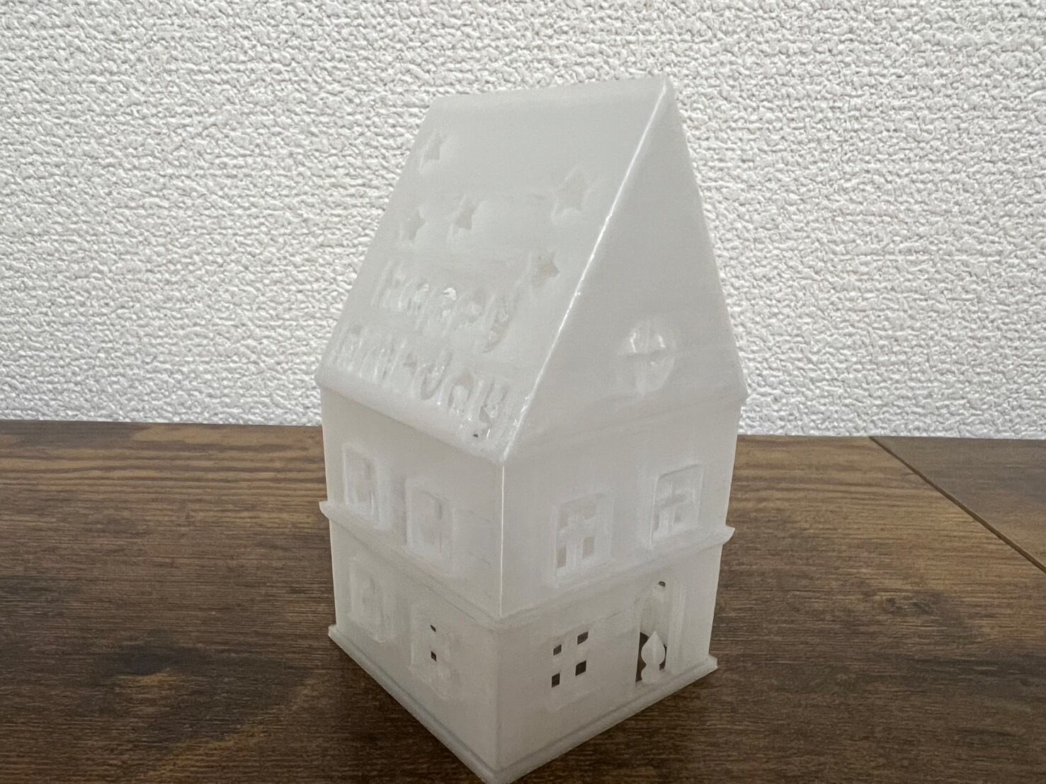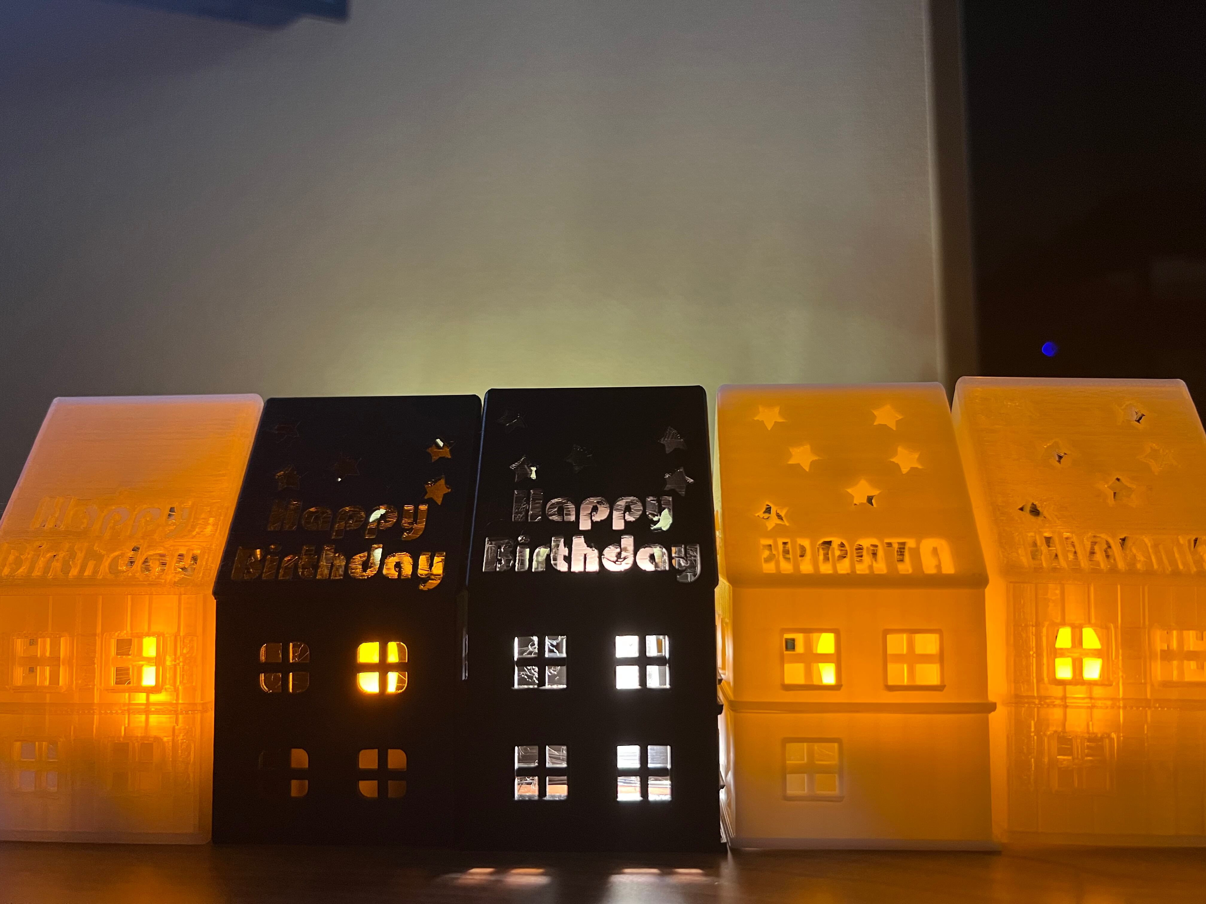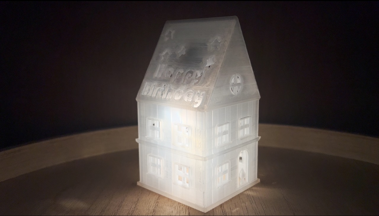 家の形を模したミニLEDライトホルダーです。3Dプリンターを使用して丁寧に作られており、ホワイトの素材がやわらかな光を広げます。暗がりの中、窓から漏れ出る幻想的な光の演出が、まるでおとぎの世界にいるかのような特別な雰囲気を醸し出します。リビング、寝室、パーティーなど、さまざまなシーンで活躍するアイテムです。屋上の文字はカスタマイズ可能で、誕生日のプレゼントやお店の名前に変更できるため、特別なギフトとしても最適です。