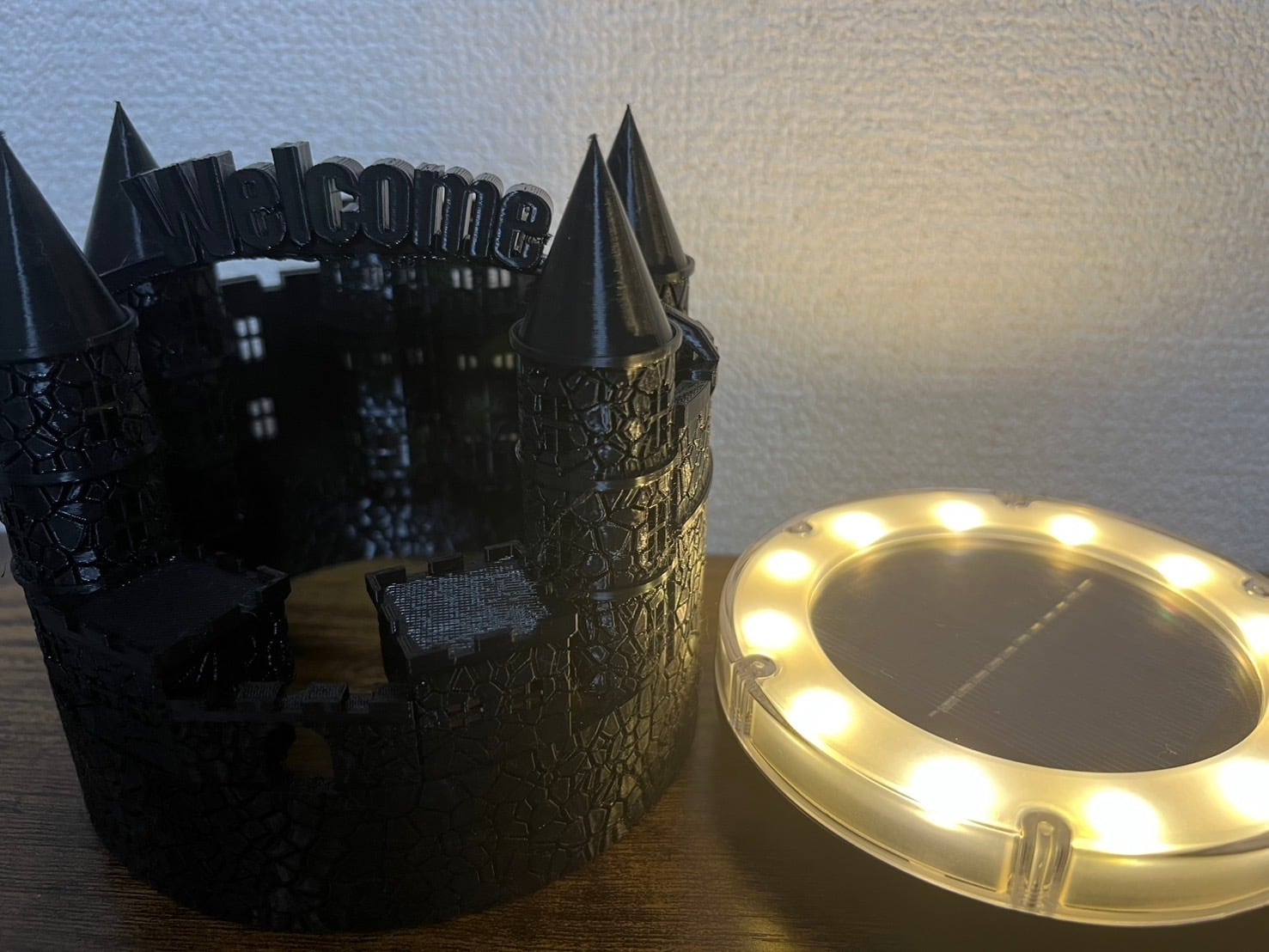 幻想的な光をお届けするLEDガーデンライトホルダーです。ブラックの素材が、柔らかい光を放ち、室内でもお庭でも特別な雰囲気を演出します。ソーラータイプなので、電池の心配もなく、手軽にご利用いただけます。暗闇の中で優しく輝くこのライトは、日常を彩る素敵なアクセントとなるでしょう。上面にあるテキストは変更可能です。※お店の名前も可能